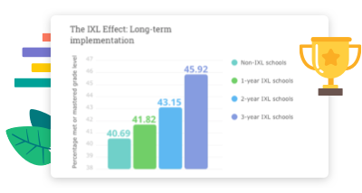Research has found that IXL schools consistently outperform schools that use any other program or method. The longer that schools use IXL, the greater that performance becomes.
